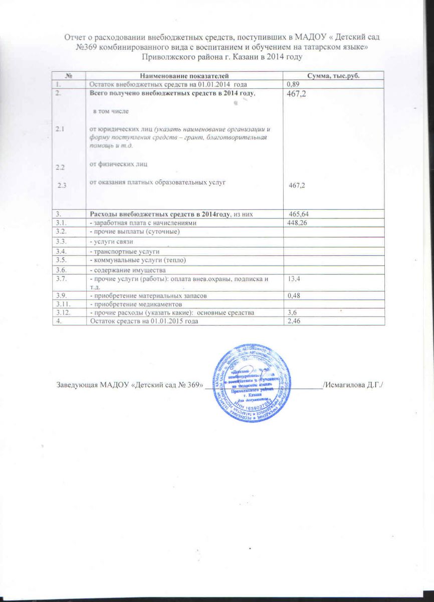отчет о привлечении и расходовании внебюджетных средств за 2014 год