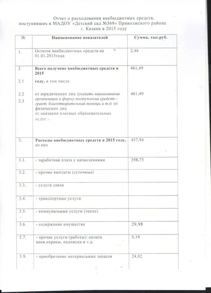 отчет о привлечении и расходовании внебюджетных средств за 2015 год
