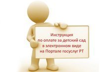 Уважаемые родители! Предлагаем Вам ознакомиться с пошаговой инструкцией по оплате за детский сад в электронном виде на Портале государственных услуг РТ, которая находится в разделе "Родителям".