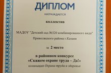 Наше заслуженное 2 место в районном конкурсе "Скажем охране труда - да!" в номинации Охрана труда и здоровья.