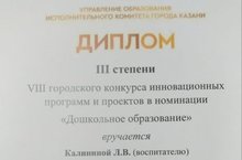 Благодарственное письмо педагогическому коллективу и заведующей Шамсутдиновой Наиле Нурмухаметовне МАДОУ "Детский сад 43 комбинированного вида" Приволжского района г. Казани Институт развития образования Республики Татарстан выражает глубокую признательность и благодарность за плодотворное сотрудничество, активную и эффективную работу по реализации инновационных проектов в области дошкольного образования.