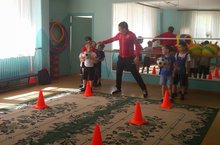 Сегодня в детском саду прошли занятия с мальчиками подготовительных групп с тренером фудбольной команды "Рубин".
