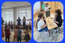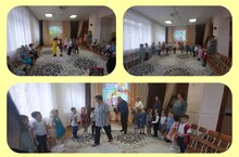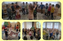 В музыкальном зале группы "Подсолнухи" и " Цветик-семицветик" провели увлекательное путешествие по нашей Родине, окунулись в историю праздника, познакомились с народными якутскими, башкирскими, дагестанскими, татарскими и русскими играми, устроили флэшмоб под " Калинку- малинку". И закончили праздник большим хороводом!