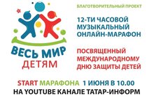 1 июня 2020 года в Казани пройдет один из самых продолжительных музыкальных онлайн-марафонов, посвященный Международному Дню защиты детей. Более 150 артистов, ведущих, блогеров и успешных людей придут в студию, чтобы поздравить мальчишек и девчонок с их праздником