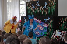 Веселый праздник со сказочными героями Мальвиной и Буратино понравился всем ребятам! Было много песен, смеха, игр и веселых конкурсов))))