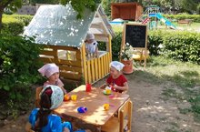 В нашем детском саду на прогулках летом мы пытаемся использовать каждый солнечный день, хорошее настроение лета. Ведь для детей игры на свежем воздухе - это радость, веселье, самостоятельность. Воспитанники радуются солнышку, наблюдают за насекомыми, изучают растения. Мальчикам очень нравится подвижные игры, а девочки любят играть в сюжетно-ролевые игры. На свежем воздухе много других увлекательных игр, это игры с мячом, конструктором. Любимые игры - с песком и водой!