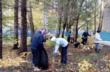 Сегодня в нашем детском саду прошел субботник. Несмотря на дождливую погоду, весь коллектив детского сада дружно принял активное участие в очистке территории.