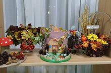Традиционно в нашем детском саду проводятся выставки детского творчества. Не прошла стороной, и чудесная пора Осени, которая вдохновляет своей яркостью и пестротой красок на воплощение прекрасных творческих идей. С 18 октября в нашем детском саду проходит выставка фотографий и поделок из природного материала «Краски осени». На выставке были представлены работы детей, созданные совместно с родителями и педагогами. Для создания неповторимых шедевров использовались дары осени – овощи, фрукты, сухоцветы, шишки, мох, ягоды. В каждой работе прослеживалась творческая индивидуальность и фантазия каждого ребенка.
