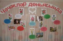 Бакчаның тәрбиячеләре балалар һәм аларның ата-аналары өчен "Чәчәкләр дөньясында" исемле күргәзмә оештырдылар. Чәчәкләр турында мәгълүматны тәрбиячеләр әзерләде. Балаларының чәчәкләр арасында төшкән фотосүрәтләрен ата- аналар булдырды.