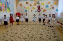 Утренники в честь 8-го марта. Наши крошки - трехлетки, которые ходят всего лишь два месяца в детский сад - и те поздравляли мам, бабушек и теть и этим праздником. И ни один малыш не постеснялся и не пролил ни слезинки перед мамами!!! Мы горды и очень рады