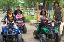 Сегодня наши дети приятно проводили время. катаясь на квадрациклах.