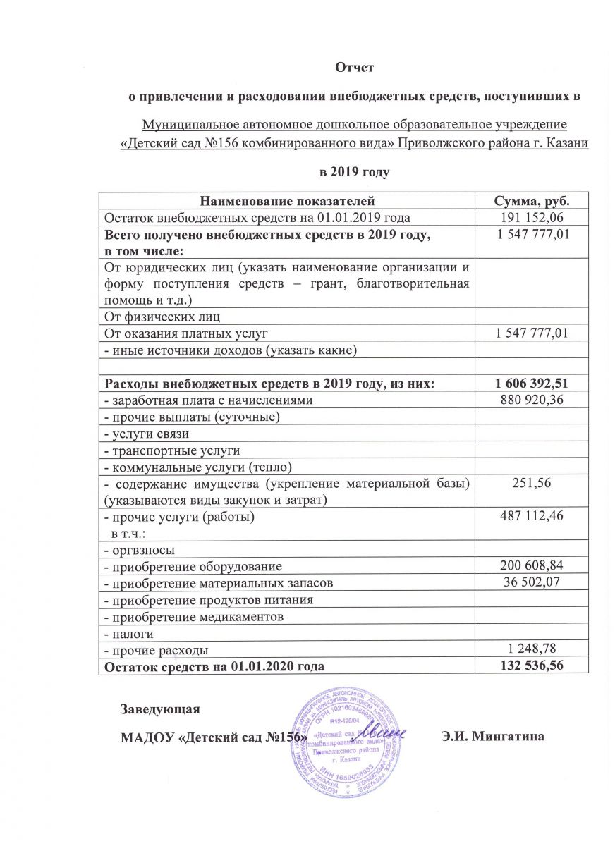 Отчет о привлечении и расходовании внебюджетных средств 2019 год