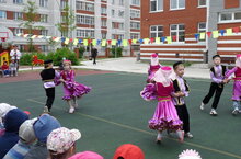Детям рассказали об истории праздника, а потом они активно участвовали в татарских национальных забавах: перетягивали канат, прыгали в мешках.