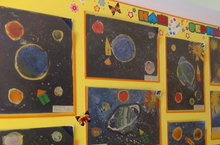 Далее свои знания они отразили в рисунках " Я рисую космос"