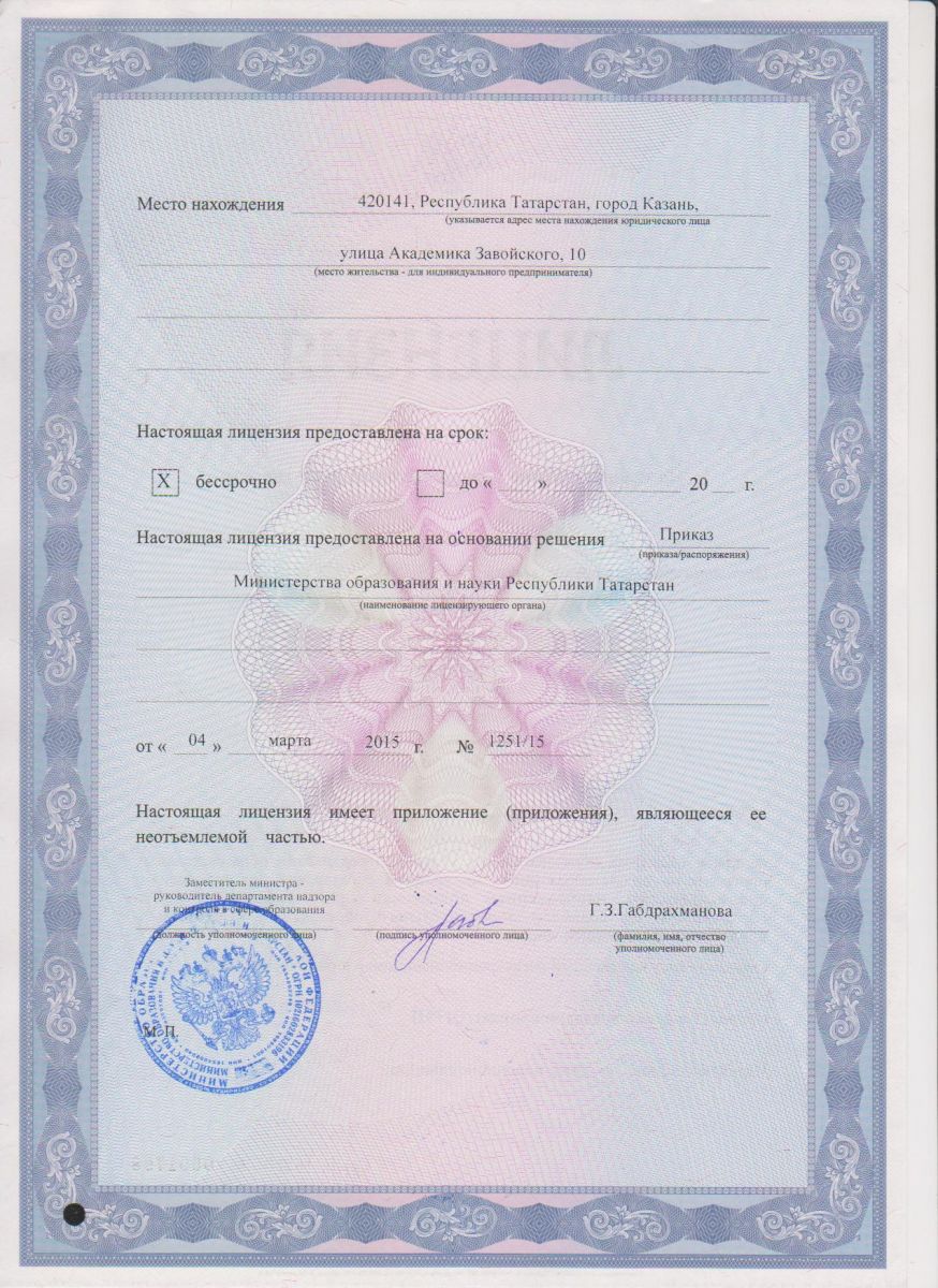Лицензия на осуществление образовательной деятельности