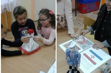Мәктәпкә әзерлек төркеме Мордвия халкының милли киемнәре белән якыннан танышты, аларның бизәкләре орнаментларын кәгазьгә төшерделәр. -