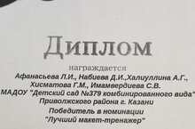 Педагоги детского сада: Афанасьева Любовь Ивановна, Набиева Диляра Ильясовна, Халиуллина Альфия Гатаулловна, Хисматова Галина Михайловна, Имамвердиева Светлана Викторовна приняти участие в районном конкурсе макетов "В мире правил дорожного движения" по пропаганде безопасного поведения на дороге среди воспитателей и родителй дошкольных образовательных организаций Приволжского района г.Казани и стали победителями в номинации "Лучший макет-тренажер".Балалар бакчасы педагоглары: Афанасьева Любовь Ивановна, Нәбиева Диләрә Ильясовна, Хәлиуллина Әлфия Гатаулловна, Хисмәтова Галина Михайловна, Имамвердиева Светлана Викторовна Казан шәһәре Идел буе районының Мәктәпкәчә белем бирү оешмалары тәрбиячеләре һәм ата-аналары арасында юлда үз-үзеңне куркынычсыз тотуны пропагандалау буенча "Юл хәрәкәте кагыйдәләре дөньясында" район макетлар конкурсында катнаштылар һәм "иң яхшы макет-тренажер"номинациясендә җиңүчеләр булдылар. -