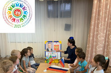 В рамках проекта к году родных языков воспитанники углубили свои знания о Российской Федерации. Цель:развитие знаний о России, ознакомление с историей создания герба, флага.Максат: Яңа материалны үзләштерү.Дәреслек, сүзлек белән эш итә белү. -