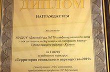 30 января на совещании заведующих Приволжского и Вахитовского районов наш детский сад был награждён Дипломом за I место в районном конкурсе «Территория социального партнёрства-2019» (заведующий Галлямшина Э.Ф., председатель профкома З.Р.Мугинова).Профсоюзы являются обязательным и активным субъектом регулирования социально-трудовых отношений. Более того, в последние годы, по нашему мнению, происходит определенный сдвиг в сторону усиления влияния профсоюзов на регулирование социально-трудовых отношений.Система социально- трудовых отношений способствует наиболее оптимальному развитию творческих способностей сотрудников, сплочению коллектива, предполагает выполнение Коллективного договора, участие в различного рода выставках, конкурсах, где наиболее полно раскрываются творческие возможности каждого участника образовательного процесса.Поздравляем коллектив в победой!30 гыйнварда Идел буе һәм Вахитов районнары мөдирләре киңәшмәсендә безнең балалар бакчасы «Социаль партнерлык территориясе-2019» район конкурсында I урын Дипломы белән бүләкләнде (мөдире Галлямшина Э.Ф., профком рәисе З. Р. Мөгинова).Коллективны җиңүләре белән котлыйбыз! -