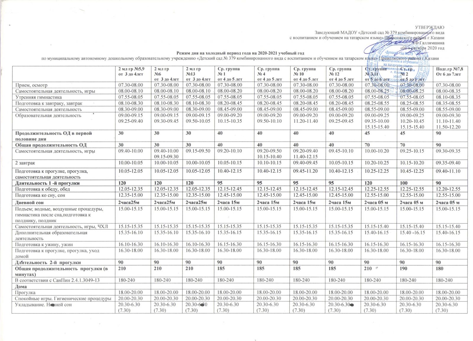 Режим дня воспитанников (обучающихся) / Тәрбияләнүчеләр көне режимы