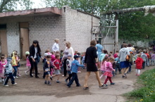 Дети подготовительных групп № 6 и №8,и частично дети старшей группы № 7 прощались с детским садом.