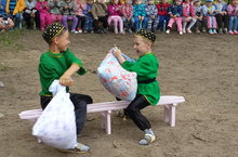 В мероприятиях участвовали воспитанники всех групп. Малыши принимали участие в народных играх и национальных состязаниях: борьба с мешками, перетягивание каната, юрте и т.д. Дети продемонстрировали свою ловкость, быстроту.