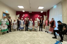 Сегодня детский сад «Рябинка» встречали дорогих гостей, ансамбль татарской песни «Жэухэр» Дома культуры пос. Мирный под руководством Ляли Маратовны, баянист - Разиль Камалов.
