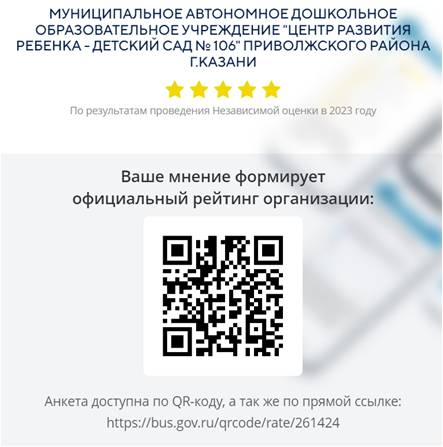 Муниципальное автономное дошкольное образовательное учреждение "Центр развития ребенка - Детский сад № 106" Приволжского района г.Казани