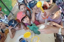 Сегодня День юного исследователя прошел увлекательно и занимательно. Ребята вместе с воспитателями проводили опыты с песком, водой и воздухом, вспомнили свойства воды, особенности песка и воздуха.