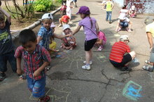 В детском саду был проведен творческий конкурс рисунка на асфальте "краски детства", посвященный Дню защиты детей.