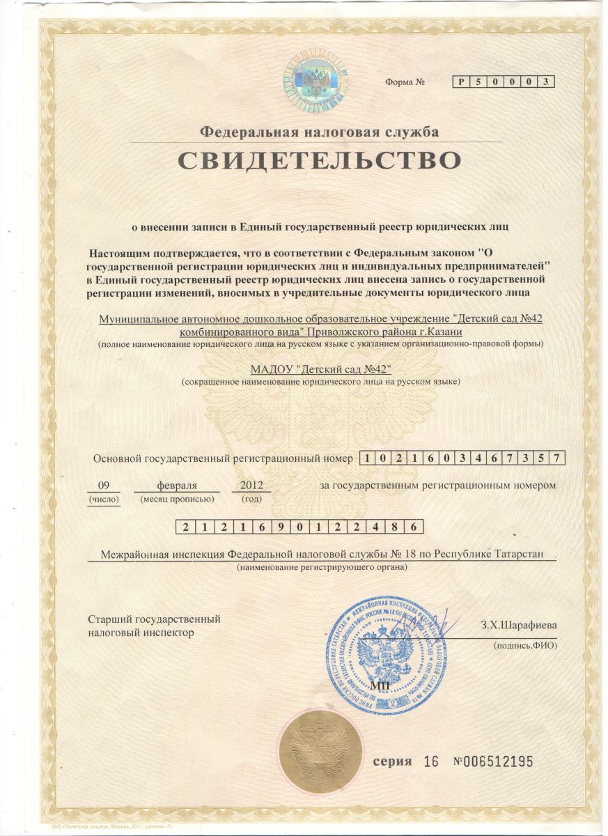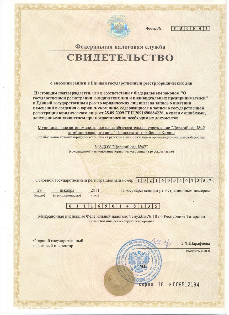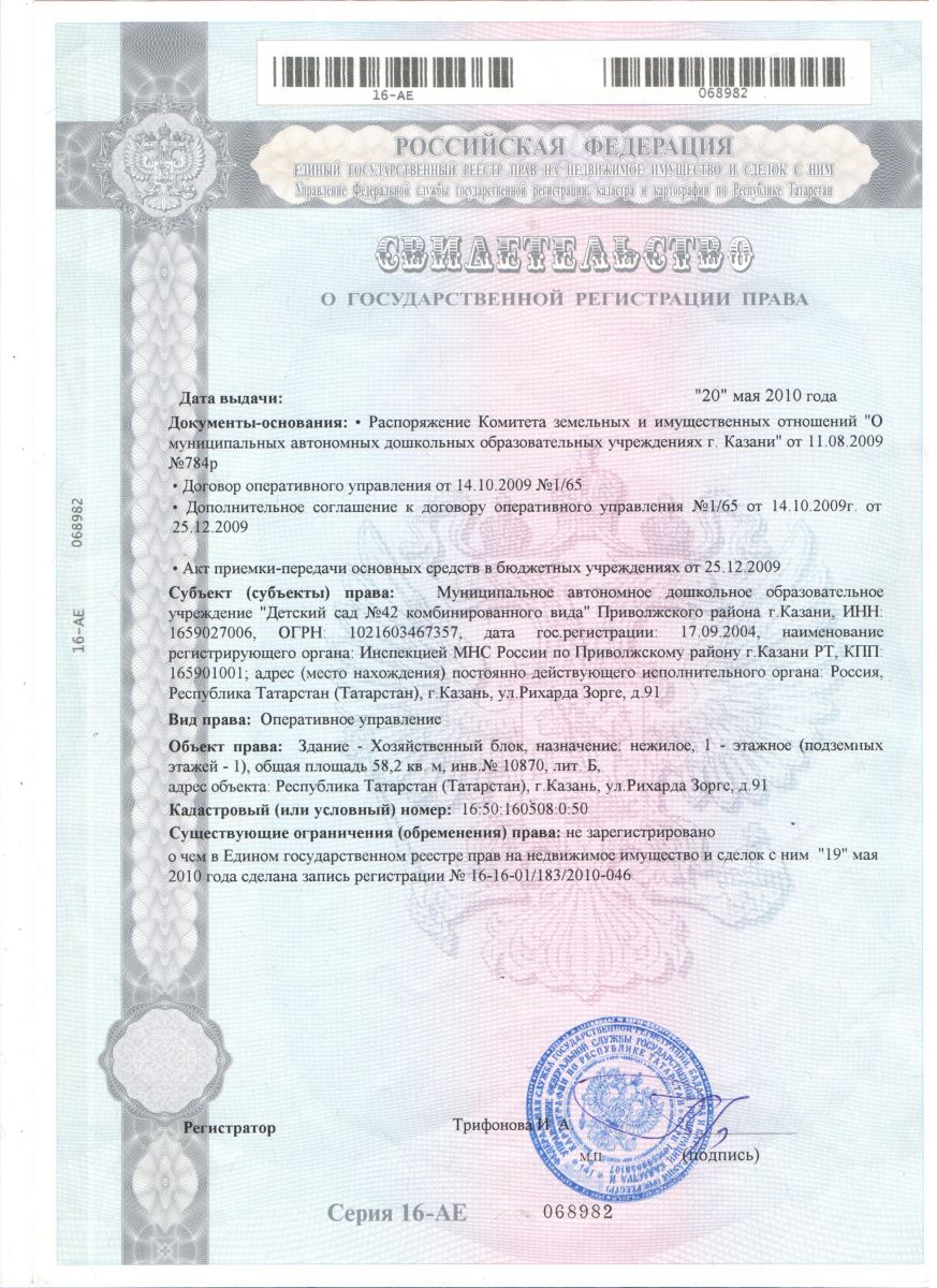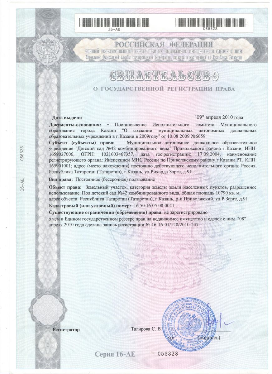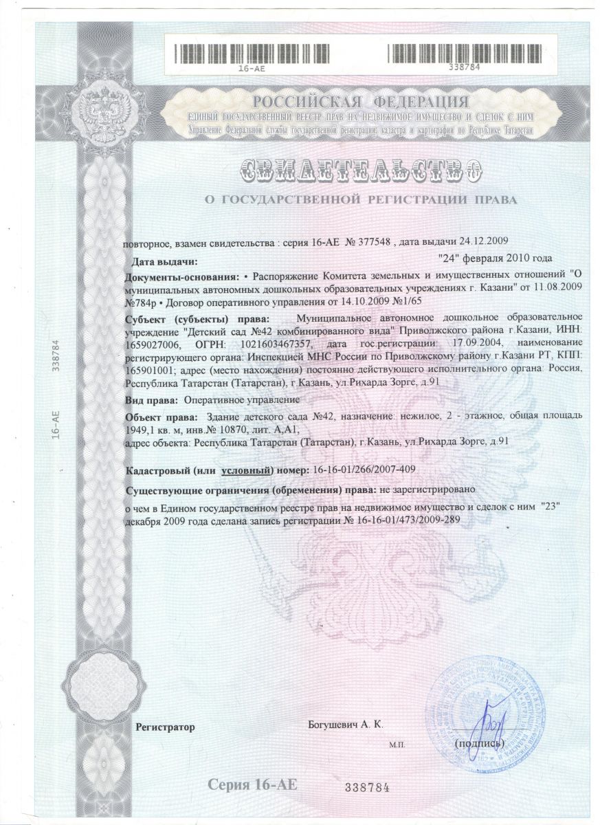 Правоустанавливающие документы МАДОУ №42