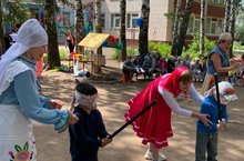 В предверии татарского национального праздника "Сабантуй" воспитатель татарского языка Гульназ Загитовна и музыкальный руководитель Людмила Леонидовна, познакомили детей с историей праздника и разыграли традиционный обряд "Сабантуйные дары". Воспитанники с удовольствием приняли приглашение и дружно станцевали татарский танец! С нетерпением ждут и взрослые и дети праздник "Сабантуй!"