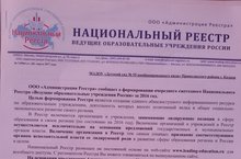 Национальный реестр ведущих образовательных учреждений России 30.03.2017