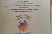 Сегодня на базе дошкольных образовательных организаций Авиастроительного и Ново-Савиновского районов г. Казани состоялись секционные заседания городского семинара-совещания руководителей ДОО г. Казани "Современные подходы к созданию условий для реализации ФГОС ДО". Заведующая детским садом Шлычкова Н.В. приняла участие в работе секции на базе МБДОУ "Детский сад № 20 комбинированного вида" Авиастроительного района г. Казани. В пленарном заседании выступила ст.воспитатель Акаева Г.Р.