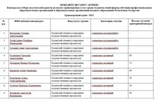 14.12.2022 года состоялось заседание комиссии по отбору победителей конкурса получателей финансовой поддержки среди обучающихся очной формы обучения профессиональных образовательных организаций и образовательных организаций высшего образования, расположенных на территории Республики Татарстан. Решением комиссии утверждены победителями 9 заявок обучающихся, согласно установленной квоте и соответсвующих Положению Конкурса.