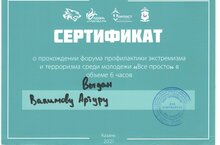 14 декабря 2021 г. на базе Исторического парка «Россия – Моя История» состоялся Форум по профилактике экстремизма и терроризма среди молодежи «Все просто», на котором принял участие студент 2 курса гр. №540Ю/9 Валимов Артур.