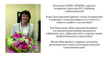 Коллектив ГАПОУ "КТНХП" сердечно поздравляет директора Р.К. Саубанову с Днем рождения!