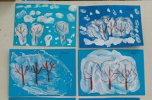 Программное содержание : Учить детей передавать в рисунке картину зимы. Упражнять в рисовании деревьев. Учить располагать на листе несколько деревьев. Закреплять умение промывать кисть. Развивать эстетическое восприятие. -