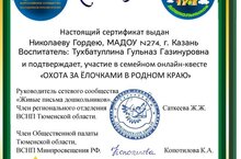 Воспитанники нашего детского сада участвовали в онлайн-квесте "Охота за ёлочками в родном краю" и получили наградные документы