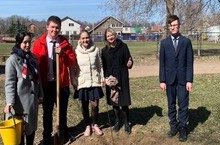 Выпускники 9Л класса сделали школе подарок: посадили на пришкольной территории яблоню.