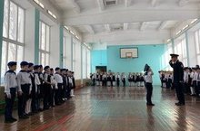 По традиции сегодня в школе прошёл смотр строя и песни, посвящённый Дню защитника Отечества, в котором приняли участие ученики 2-4 классов.