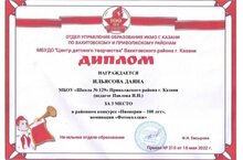 Ильясова Даяна заняла III место в районном конкурсе "Пионерии-100 лет" в номинации "Фотоколлаж". (Педагог-Павлова И.Н)