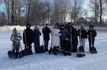 Несмотря на морозную погоду на акцию «Чистый каток» вышли учащиеся 7Б и 6В классов.