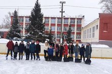 Несмотря на морозную погоду на акцию «Чистый каток» вышли учащиеся 8Л и 6А классов.