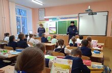 Перед зимними каникулами инспектор ГИБДД проводит беседы с учащимися о ПДД.