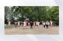 Во второй половине дня ребята приняли участие в танцевальном флешмобе ко Дню России, и были награждены сладкими призами.