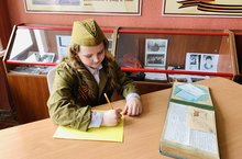 Активист ДОО «Содружество» Насыбуллина Камилла читает свое письмо воевавшим на войне.