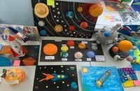 Традиционно, в День космонавтики, в школе прошел конкурс-выставка декоративно-прикладного творчества "Мой первый полет в космос". Школьники очень старались. Более 50 грамот в разных номинациях. Молодцы!