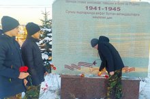 В День Героев Отечества юнармейский отряд "Юго-восток" возложил живые цветы к обелиску в ЖМ "Мирный". Руководитель отряда Азизов Ф. С.