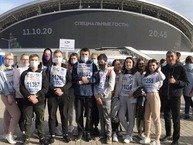 Сегодня учащиеся 10А и 10Б классов приняли участие в городском массовом легкоатлетическом забеге "Кросс нации - 2020" около СК "Казань- Арена".